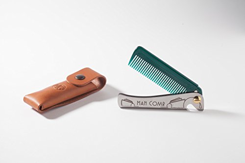 - FOLDABLE POCKET COMB WITH LIMITED EDITION LEATHER CASE- Proudly presenting the king amongst pocket combs: The Limited Edition Man Comb brings you a slick hand-finished folding pocket beard comb and bottle opener with Italian tan leather case. As previously seen on kickstarter, this versatile and high performance man comb for hair, beard and beer proves that men can multi-task after all!