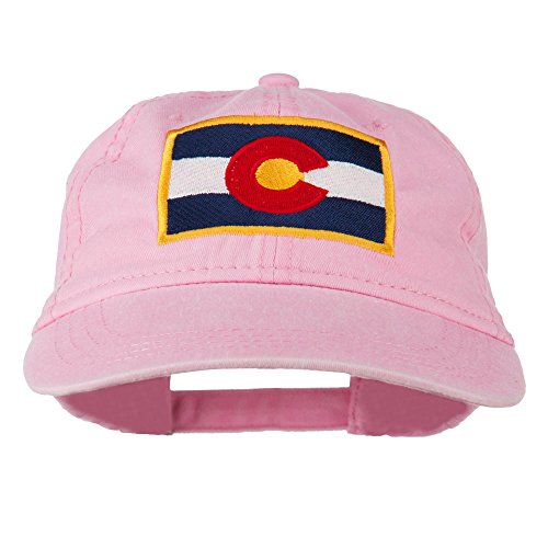 -. Binding : Apparel -. Brand : E4hats -. Department : womens -. Feature : Made of 100% cotton. / One size fits most with an adjustable buckle strap closure, fitting up to 7 1/2. / Same material inner hatband. / Adult/Unisex. / Crown measures 3 1/2 inches deep. -. ProductGroup : Apparel -. ProductTypeName : HAT -. Title : Colorado State Flag Embroidered Washed Buckle Cap - Pink