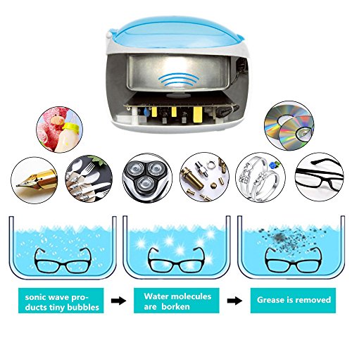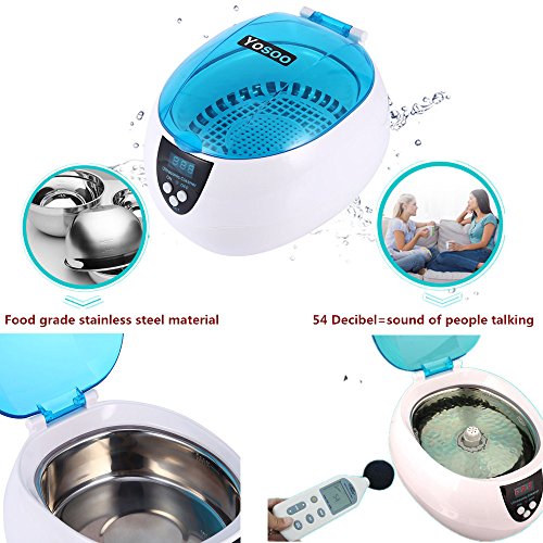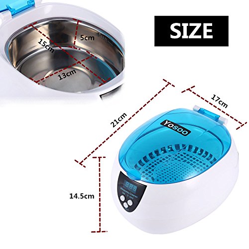 -. Feature : WORKING P.R.ICIPLE: Through the electric current to produce ultrasound and become into cavitation in water, the water molecules continue to burst to produce energy to impact the surface cleaning objects, crack off attached to the bacteria and stains in the object / EASY TO USE: Simply fill it with water, submerge your jewelry and press the ON button to have your items shimmering in minutes. The sonic waves clean your wares quickly, efficiently and most importantly gently. This amazing cleaner gives your jewelry that professional sparkle in the comfort of your home.The cleaner device cover can reduce sound levels effectively / FEATURE: The device is 4200HZ/50W transducer, which makes high efficient cleaning with super power.The tank is made of high-grade material-stainless steel, which makes it be more durable, corrosion-resistant and also heat-resistant.The LCD display makes it clear to read and the timer choose the setting you desire / SUITABLE FOR: This device is durable that can withstand high impact and it comes with cleaning basket, watch holder and CD holder.Can be used on lab tools, instruments and fittings, glasses, watchbands, waterproof watches, household hardware, pen heads, P.R.Inter heads etc.Clean all your of your metal wares and save money with this convenient little machine / YOSOO GUARANTEE: 100% brand new. Yosoo brand aim at "to maximize the satisfaction of customers" as its operation commitment.We provide a 6 months warranty for this cleaner If you have any quality problem. We aim at "the best can be better" as operation tenet. Your satisfaction is our happiness