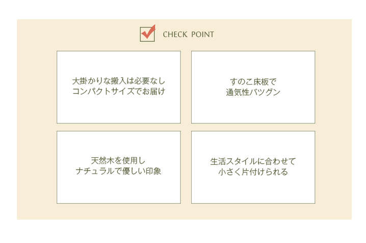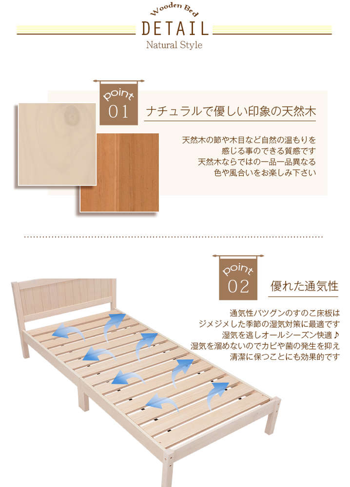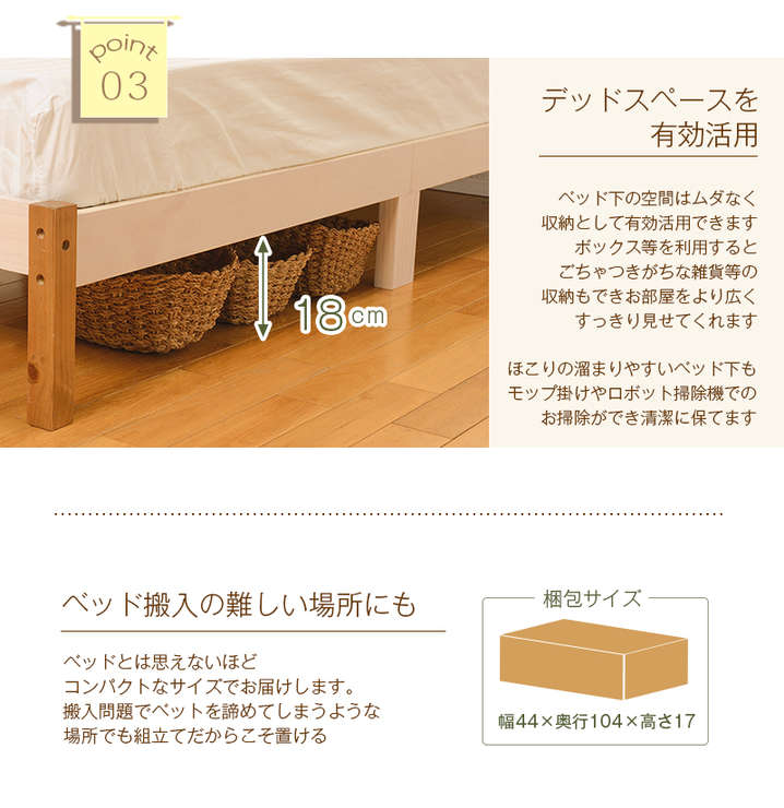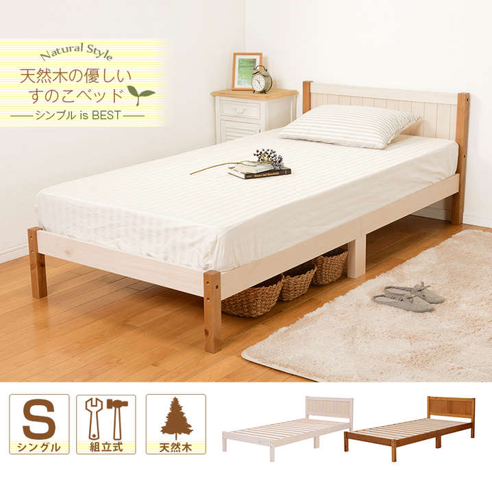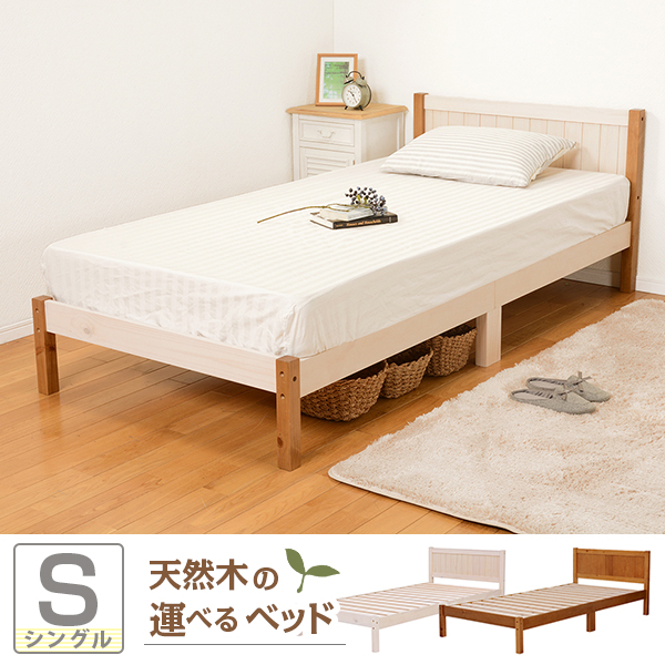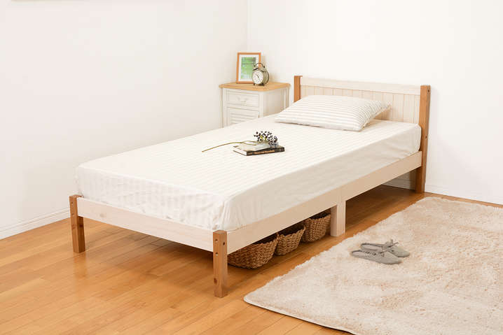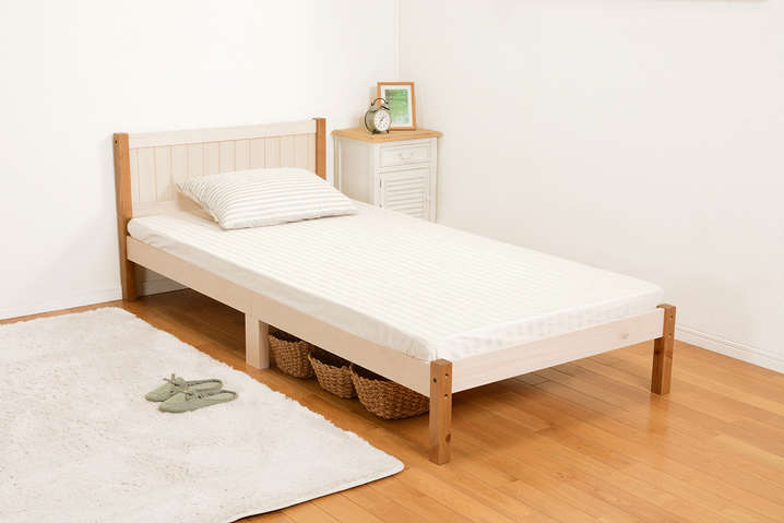 ●コンパクトに分解できる木製シングルベッド。コイルマットレスでも布団でも使用可。