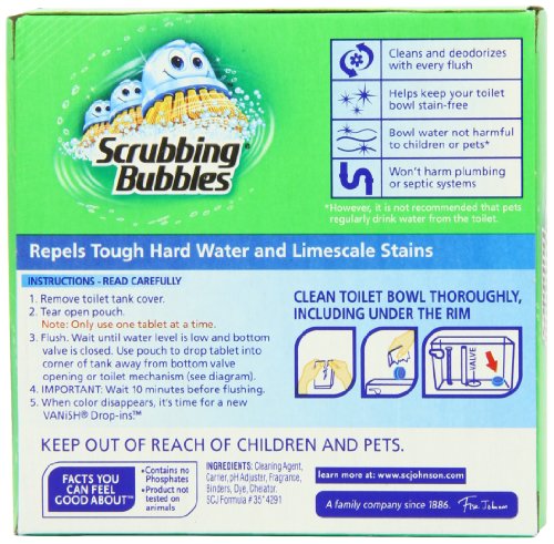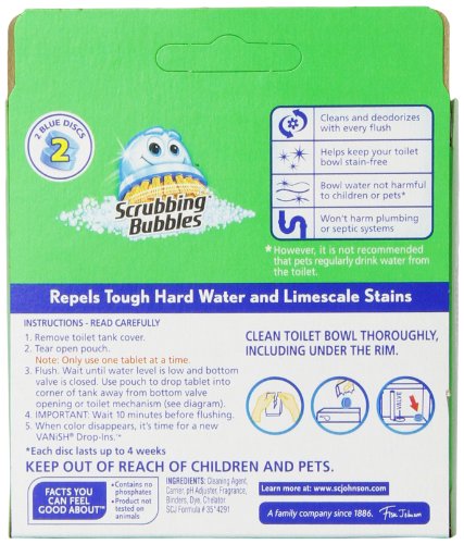 -. Binding : Health and Beauty -. Brand : Vanish -. EAN : 0019800002503 -. Feature : Helps keep your toilet bowl cleaner than ever; Cleans and deodorizes with every flush / Bowl water not harmful to children or pets*; Won't harm plumbing or septic systems / Repels tough hard water and limescale stains / Breaks down dirt and deposits / Sodium Dodecylbenzene Sulfonate in the cleaning agent -. Label : Vanish -. Manufacturer : Vanish -. MPN : 00250 -. NumberOfItems : 6 -. PackageQuantity : 6 -. PartNumber : 00250 -. ProductGroup : Health and Beauty -. ProductTypeName : HEALTH_PERSONAL_CARE -. Publisher : Vanish -. ReleaseDate : 2006-04-12 -. Studio : Vanish -. Title : Vanish Drop-Ins, Blue, Twin Pack (Pack of 6) -. UPC : 019800002503