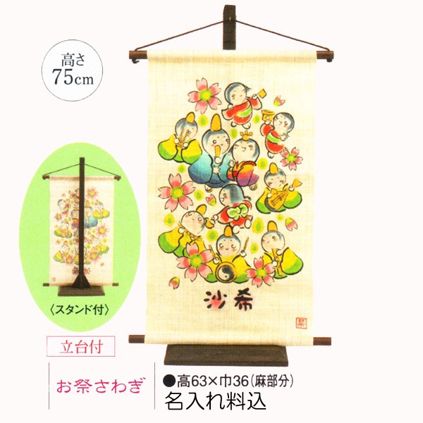 名前旗 名入れ旗 雛人形 タペストリー 命名旗 お祭さわぎ 巾36高さ63cm(布部分) 全体高さサイズ75cm