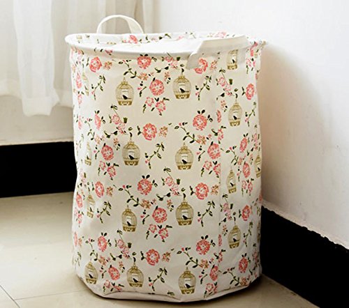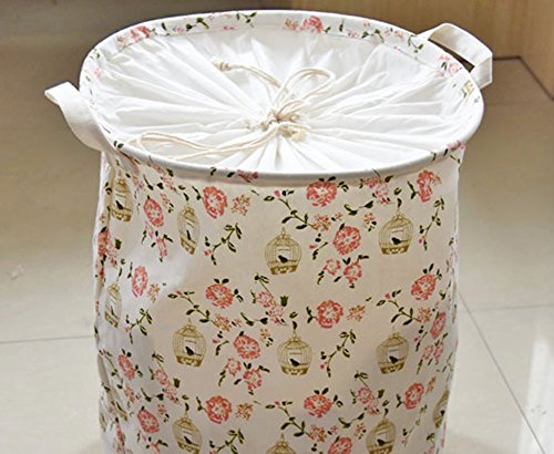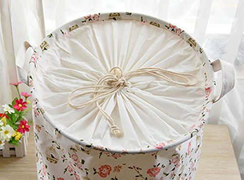 -. Title : Moolecole Household Laundry Basket Linen Patchwork Laundry Bag Floral Pattern