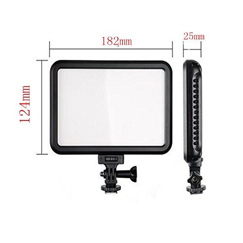 Model :PT-12B Size:182mm*124mm*25mm Output Power: 12W Luminous Flux: 1200LM Light Source: Shadowless Dimmer 10%-100% Color Temperature 3200K-5600K Lifespan: 50000 hours Battery Type: NP-F550, NP-F750 and NP-F960 DC Power Input: DC6.5-17V