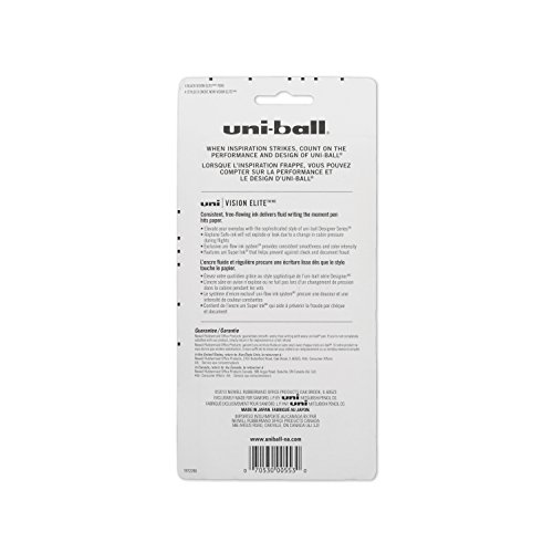 uni-ball Vision Elite Designer Series Stick Rollerball Pens, Bold Point, Black Ink, Pack of 4
