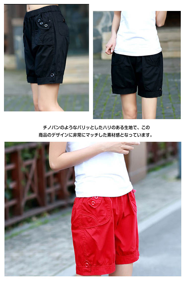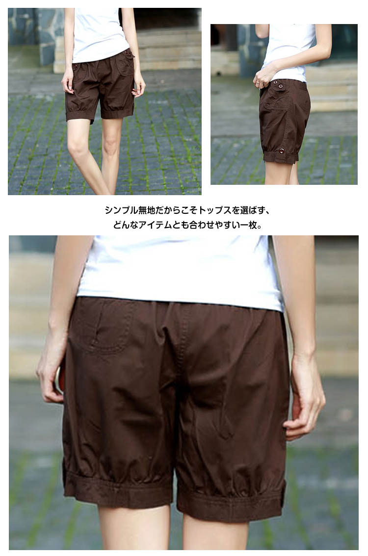| いろんなスタイルが楽しめる人気のハーフパンツ!!穿いてからも動きやすくてストレスフリーな着心地です。チノパンのようなパリッとしたハリのある生地で、この商品のデザインに非常にマッチした素材感となっています。左右にそれぞれポケットが付いていて、小銭や鍵などのちょっとした小物を入れられるのが便利☆シンプル無地だからこそトップスを選ばず、どんなアイテムとも合わせやすい一枚。 | |