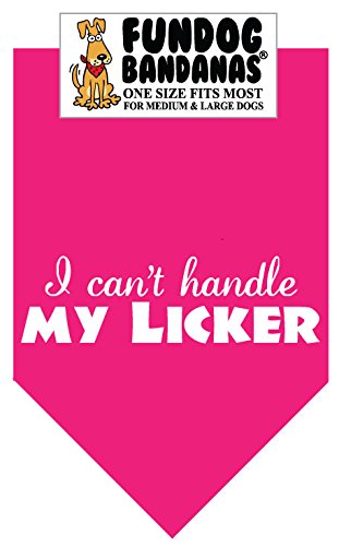 -. Binding : Misc. -. Brand : FunDog Bandanas -. Color : Hot Pink -. EAN : 0083351947835 -. Feature : Cute! / Fun! / Affordable! / Makes a great gift! / 22x22x31inches -. Label : The Dog Perk Corporation -. Manufacturer : The Dog Perk Corporation -. PackageQuantity : 1 -. ProductGroup : Pet Products -. ProductTypeName : PET_SUPPLIES -. Publisher : The Dog Perk Corporation -. Size : One size fits most for medium to large dogs -. Studio : The Dog Perk Corporation -. Title : BANDANA - I can't handle my LICKER for Medium to Large Dogs - hot pink -. UPC : 083351947835