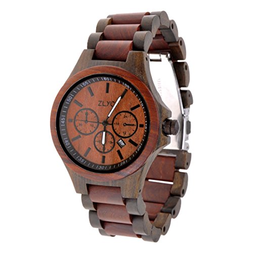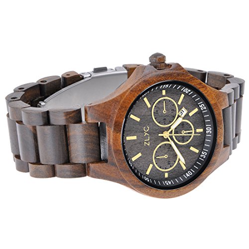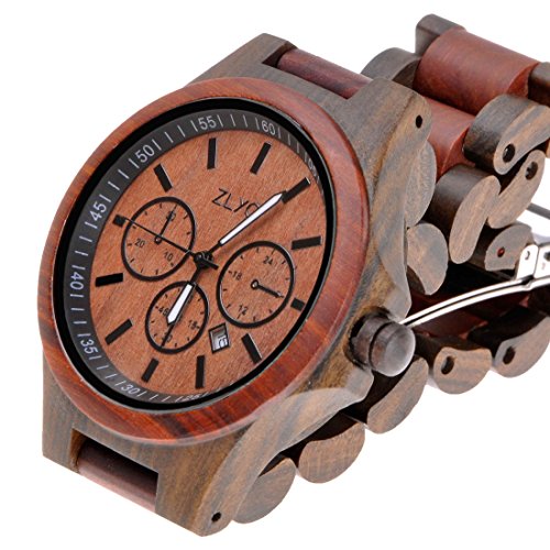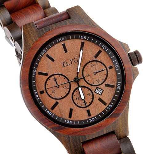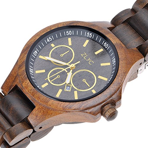 -. Title : ZLYC木製腕時計 ウッドウォッチ 丸いケース ラウンドフェイス 竹の木のバンド カレンダー付き ファッション 男女兼用