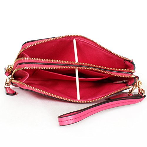 -. Title : Pebbled Leather Double Corner Zip 64130 Dahlia