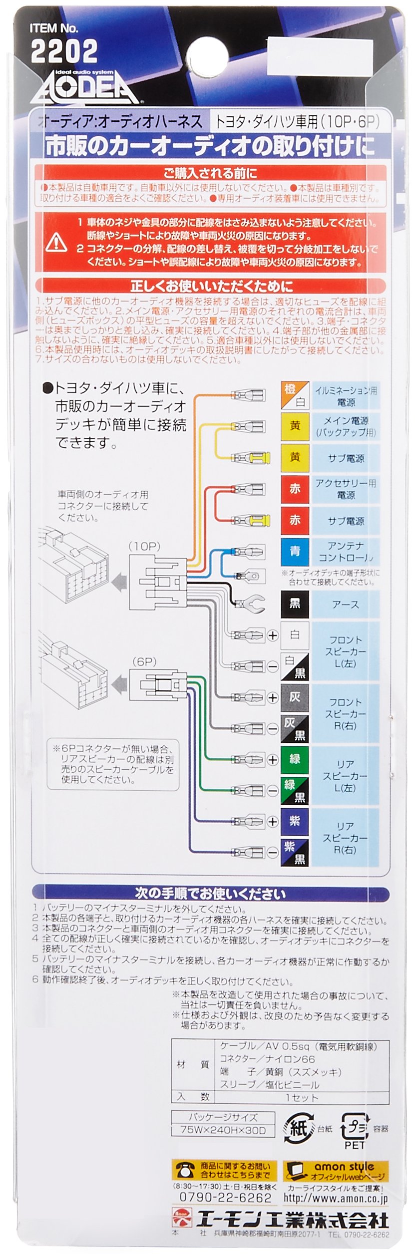 Amon 2202 audio harness for Toyota Daihatsu (10P ・ 6P)