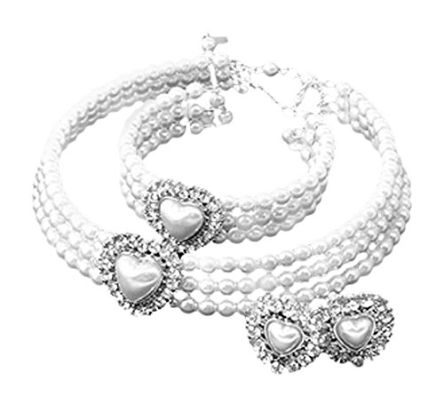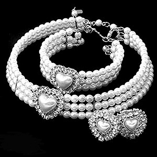 -. Binding : Jewelry -. Brand : HW Necklace Collection -. Department : Womens -. Feature : Metal based small imitation pearl necklace; 16 1/4 inches long with 2 1/4 inch extension with lobster claw clasp / Imitation pearl cuff style bracelet (no clasp) is 2 1/2 inches in diameter; will fit up to a size 7 ladies wrist / Clip on earrings are 1 inch long / Necklace, bracelet and earrings each contain heart-shaped imitation pearl decorated in rhinestones; 1 inch wide by 1 inch tall / Dependent upon your neck size, this will fit as either a collar style piece (small to medium necks) or as a tighter choker (medium to large necks) -. ProductGroup : Jewelry -. ProductTypeName : FASHIONOTHER -. Title : Imitation Pearl Heart Rhinestone Necklace Cuff Bracelet and Earrings, 16.25+2.25" Ext.