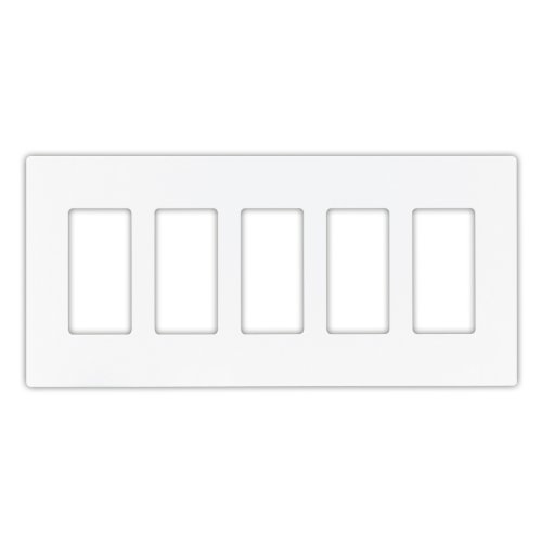 Eaton PJS265W Decorator Screwless Wallplate, 5-Gang, White