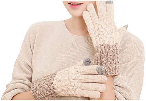 Product Description Women's Texting Touchscreen Winter Warm Gloves Wool Knit Twist Cable Gloves Mittens Our winter gloves are fashion forward designed, which are windproof and washable. They will show your taste of fashion and keep your hands warm indoors or outdoors. Hand wash would be better, hang dry, and do not bleach. Material: Acrylic Wool 0