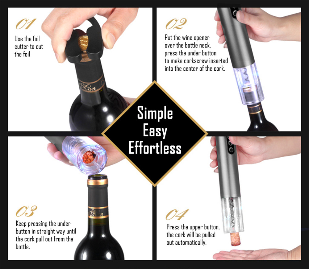 Package Contents: 1 x Electric Wine Opener, 1 x Foil Cutter, 1 x Chinese and English User Manual