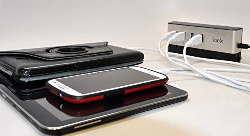 - Feature : Ionic 4-Port USB Hub for new Apple iPad Air 2/ iPhone 6/ iPhone 6 Plus/ Samsung Galaxy Note 4/ Samsung Galaxy S5/ Amazon Fire Phone/Samsung Galaxy Tab S/LG G3/ Galaxy Tab 4 7.0 8.0 10.1 Galaxy TabPro/ Galaxy NotePro 12.2 /Apple iPad 5 iPad Air/ iPad Mini/ iPad Mini 2/ iPhone 5/ iPhone 5S/ iPhone 5C / Kindle Fire (White) / 4 4-Port USB Ports which can charge 4 devices at the same time / IC Chip built in to prevent overcharging / Made Of Fine Workmanship / Brand New