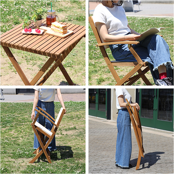 ●折りたたみガーデンテーブル・チェア肘付き(3点セット)人気素材のアカシア材を使用 Yuel-ユエル-