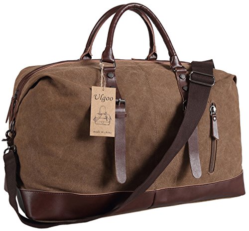 -. Brand : Ulgoo -. Feature : Ulgoo travel duffle bag made by canvas and top quality genuine leather / Large weekend bag *1 zipper pockets on the front,One main closure with zipper on top to close the bag / Inside the closure :1 wall zipper pockets + 1 staff pocket + 1 cellphone pocket / High quality, durable, and stylish bags designed for all-purpose use. / Dimensions: 54cm*33cm*24cm -. IsAutographed : 0 -. IsMemorabilia : 0 -. Label : OXYO -. Manufacturer : OXYO -. MPN : MA-10090-F1 -. PartNumber : MA-10090-F1 -. ProductGroup : Sports -. ProductTypeName : OUTDOOR_RECREATION_PRODUCT -. Publisher : OXYO -. Studio : OXYO -. Title : Ulgoo Travel Duffel Bag Canvas Bag Leather Weekend Bag Overnight