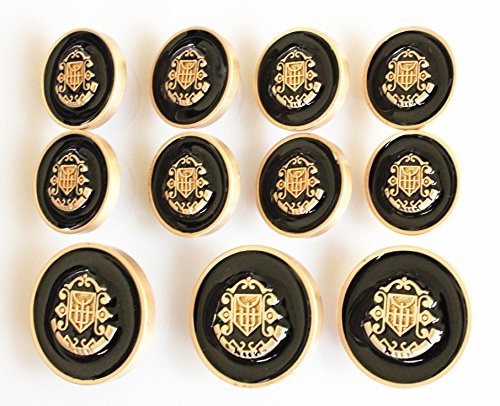 YCEE 11 Piece Gold Metal and Black Blazer Button Set - Shield - For Blazer, Suits, Sport Coat, Uniform, Jacket