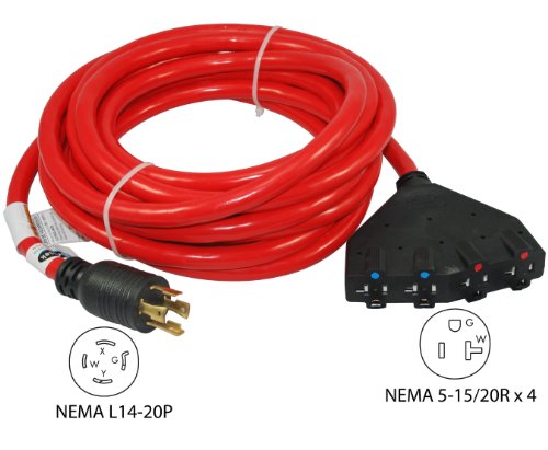 Conntek 20501 Generator Power Cord 25-Foot 20 Amp 125/250 Volt 4 Prong Male Plug To 15/20 Amp Female Connector