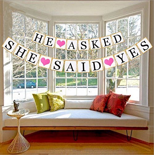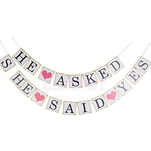 Zamango He Asked She Said Yes,Bridal Wedding Bunting Banner Photo Prop Engagement Garland Card Decoration