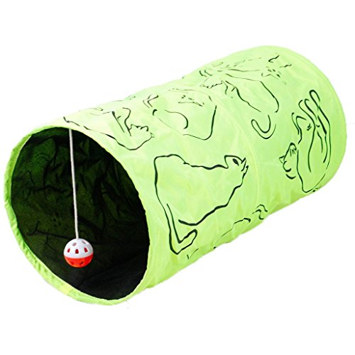 (Aurorax)/Pet Supplies/Training Behavior Aids/DIRECT FROM USA/Pet Cat Tunnel,Collapsible Play Toy ,[Tunnel Cat Printed Green Crinkly Kitten Tunnel Toy With B...