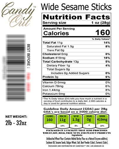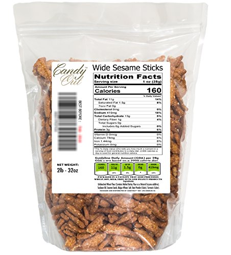 CandyOut Wide Sesame Sticks 2 Pound in Sealed Reusable Stand-up Bag