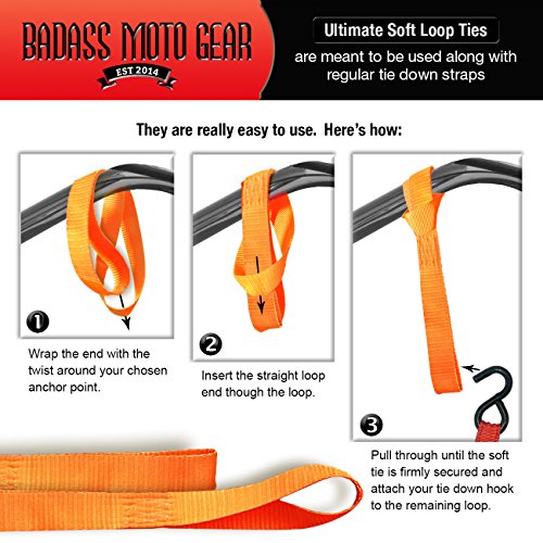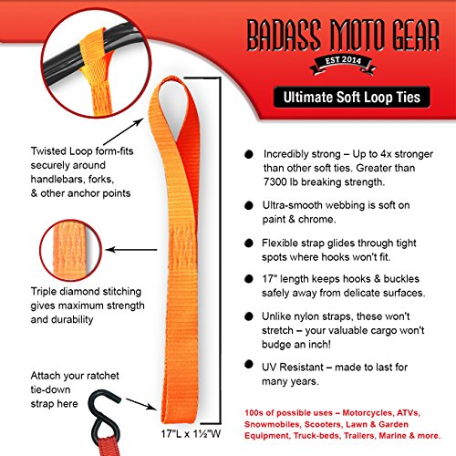 High Performance Motorcycle Tie Down Straps. Heavy Duty - Ultra Soft Tiedowns Protect & Pamper Chrome. Easy to Use. Fits where Ratchet Straps won’t go. Best for Bikers, ATV, Truck, Trailer. 4-Pack