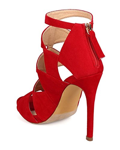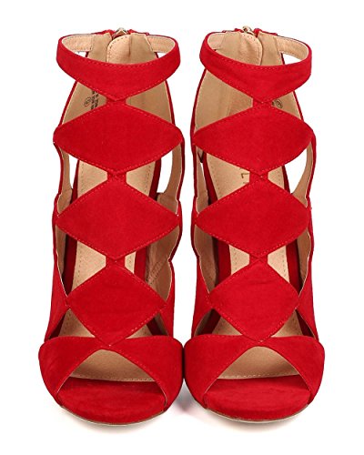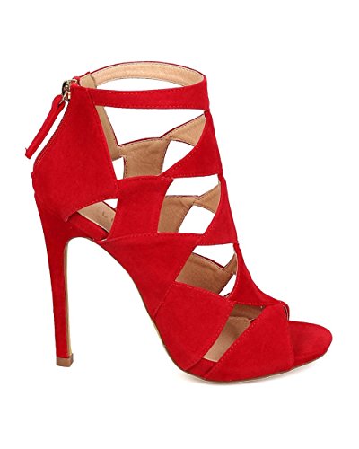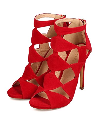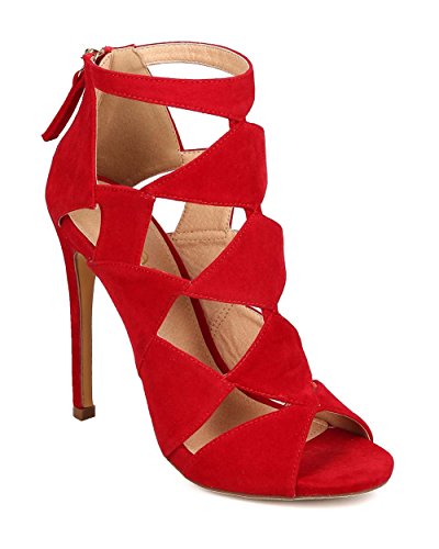Liliana EI95 Women Faux Suede Peep Toe Cut Out Stiletto Heel - Red