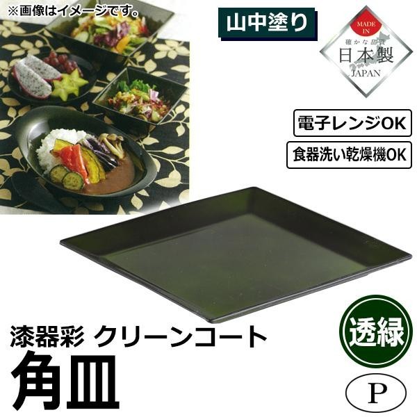 撥水性が高く汚れがつきにくいクリーンコート加工の角皿です。 製造国:日本 素材・材質:飽和ポリエステル樹脂・ABS樹脂ウレタン塗装 商品サイズ:約幅195×奥行195×高さ15mm 仕様:電子レンジ使用可食器洗い乾燥機使用可 ※サプライヤー直送品 ご注文後3~4営業日後の出荷となります【商品名】パール金属 漆器彩 クリーンコート 角皿 透緑 K-6144