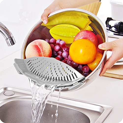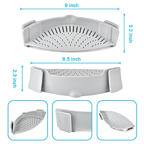 1.★MULTI USE This magic silicone strainer is good enough to fit onto nearly all pots, pans, and bowls, and you can use it to straining pasta, noodles, vegetables, potatoes, etc without spills out.