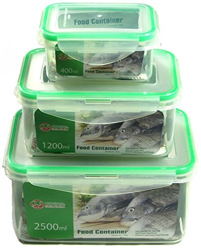 Uniware 3pc Microwave Safe Large Rectangle Air Tight Food Container with Silicone 400,1200, 2500 Ml [7503]