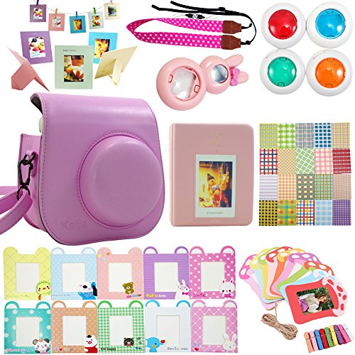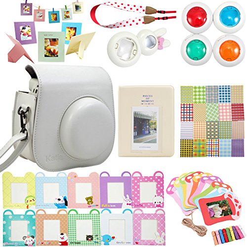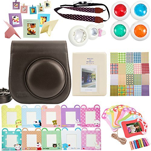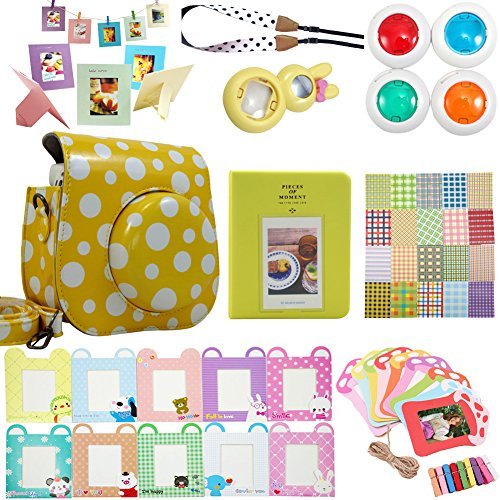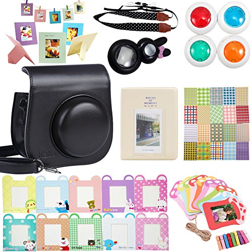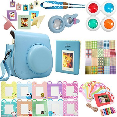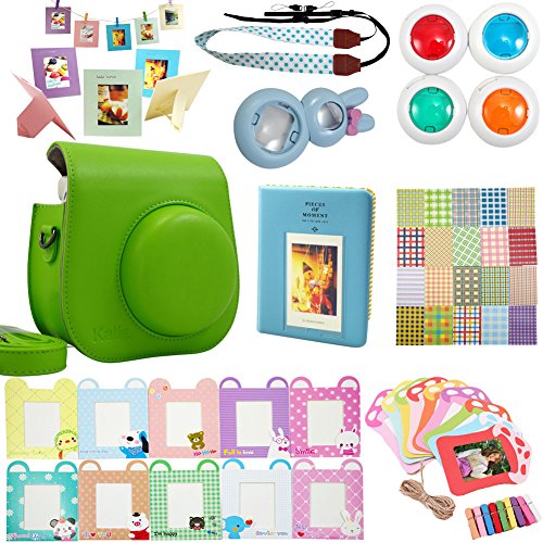 Package includes: 1 x Fujifilm instax mini 8 case bag/ 1 x Hard Cover Instax Mini Book Album 64 photos, 2 photos per page/ 1 x Mini 8 close-up lens(self-portrait mirror) /1 x Colorful Filter, 4 colors(Blue Green Orange Red)/ 1 x Camera Strap/ 1 x colorful decor sticker borders, 20 pcs/ 2 x colorful wall decor hanging frame,20 pcs/ 2 x Different Colorful 3 inch Frame, 10 pcs