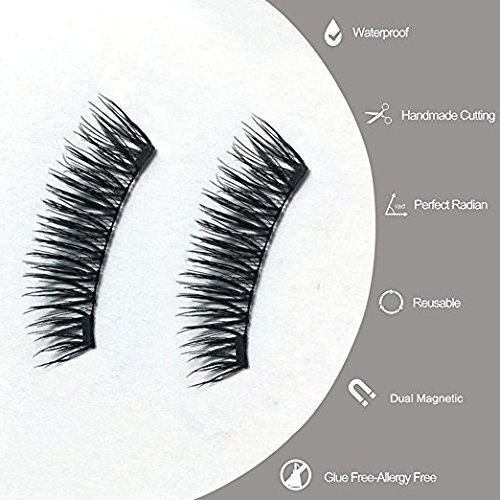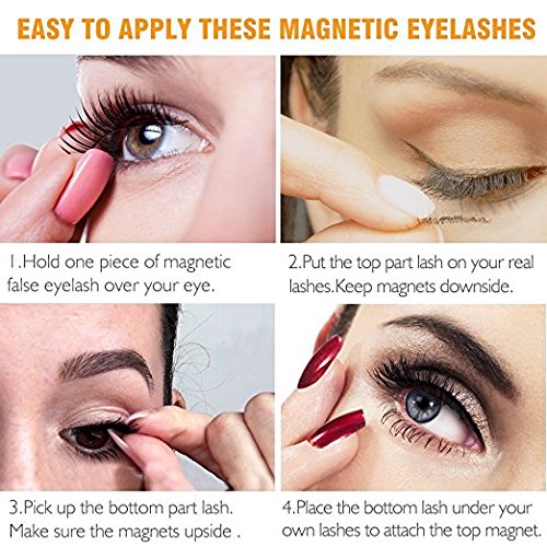 APPLIES IN SECONDS – Just connect top and bottom eyelash magnets and you can enhance your appearance even when in a rush. REUSABLE AND CLEANABLE – When used properly, our eyelashes can be used again and again. After use, use a moist towelette to clean the eyelashes of makeup or other residue. IRRITATION-FREE – We use a glue-free design in order to minimize irritation to your eyelashes. This also prevents any damage to your natural eyelashes.