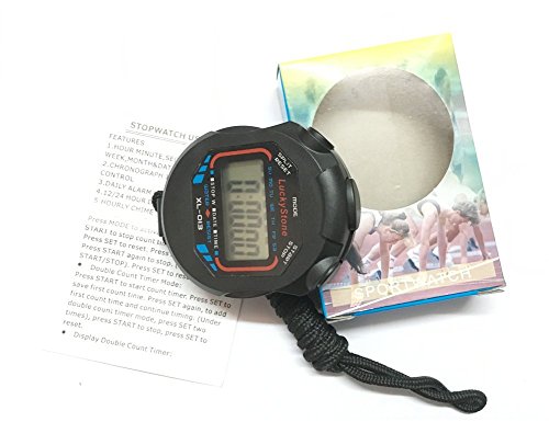 -. Binding : Sports -. Brand : LuckyStone -. Color : Black -. EAN : 0620809005015 -. Feature : Displays date, time, alarm and calendar / Double count timer mode for multiple times / High quality stop-watch measures your time down to the millisecond / Color: Black / Comes with adjustable wrist strap for self timing while running -. IsAutographed : 0 -. IsMemorabilia : 0 -. Label : LuckyStone -. Manufacturer : LuckyStone -. ManufacturerPartsWarrantyDescription : Parts -. Model : SG6623169366 -. MPN : SG6623169366 -. PackageQuantity : 1 -. PartNumber : SG6623169366 -. ProductGroup : Sports -. ProductTypeName : SPORTING_GOODS -. Publisher : LuckyStone -. Size : Free -. Studio : LuckyStone -. Title : Digital Professional Handheld LCD Chronograph Water Resistant Stop Watch Waterproof Sports Stopwatch Timer with Alarm Feature for Sports es Fitness es and Referees -. UPC : 620809005015