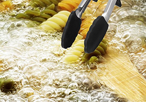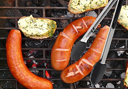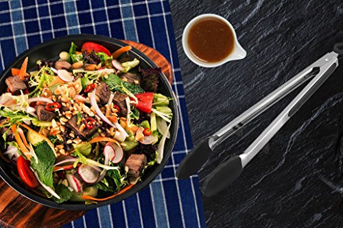 EXTREME COMFORT-- Stainless steel tongs with rubberized handles offer an easy grip, hold the foods safely and strongly,perfect and safe to use for handling hot food.