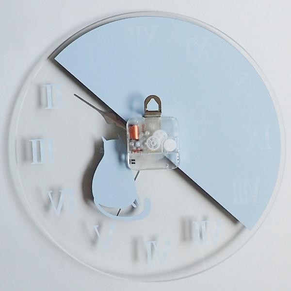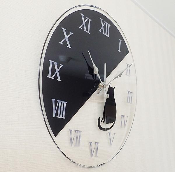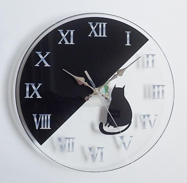 | 猫好きにはたまらない♪ブラック×クリアのクールな掛け時計!! |