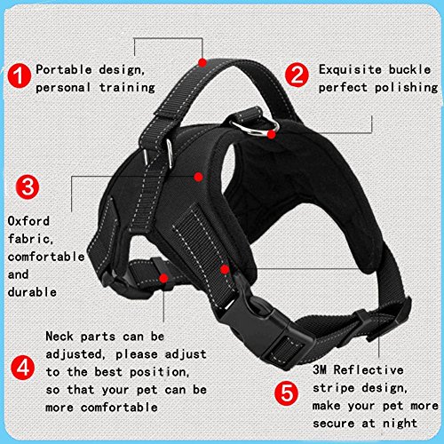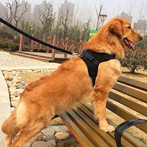 Dog Harness Description Comfortable and breathable mesh fabric,Elastic and does not hurt the skin. Switch free conversion to prevent your dog from slipping out of the harness.You can adjust the buckle to the best position to make the dog comfortable and not bite it.3M Reflective yarn will reflect when the light shines . It improves the safety about the dog when he goes out in the evening . Dog Harness Size (Small) Fits Neck Size 14.7-18.9 inch/ Chest Size 17.7-20.1 inch/ weight less than 28 lbs. (Medium) Fits Neck Size 17.7-21.3 inch/ Chest Size 20.5-23.6 inch/ weight 28-44 lbs. (Large) Fits Neck Size 21.3-26.4 inch/ Chest Size 24.8-30.3 inch/ weight 45-77 lbs. (Xtra Large) Fits Neck Size 23.6-27.6 inch/ Chest Size 28.3-35.8 inch/ weight 78-135lbs. Package Include a harness and leash 0