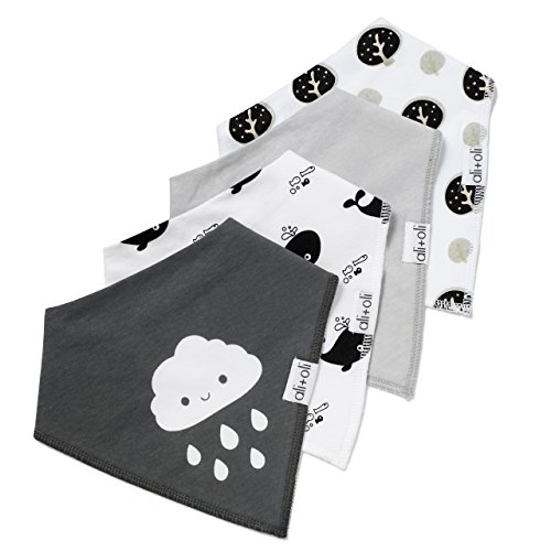-. Binding : Baby Product -. Brand : Ali+Oli -. Feature : ADJUSTABLE TO FIT NEWBORNS TO TODDLERS - we designed our modern newborn drool bibs to be used from newborn baby to teething toddlers. We sest our drool bibs to be used from 3-24 months. We provide two nickel-free adjustable button snaps on each drooling scarf to give you the flexibility you need during feeding time for baby or for general everyday use. Happy baby means Happy Mom. / MODERN ABSORBENT DROOL BIBS - made with a 100% soft organic cotton front and an equally soft polyester fleece on the back, our baby bandana bib organic is the perfect choice to help keep your baby clean and dry. / QUALITY IS IN THE DETAILS - we highly recommend that you inspect the details of our Drool Bibs. We take great P.R.Ide in the high-quality craftsmanship that goes into each and every bandana bib for baby. We are parents and we understand how important it is to know that the products our children come into contact daily are safe and responsibly made. That's why we have chosen the highest quality organic cotton and have chosen to used nickel-free snaps instead of Velcro. / PERFECT BABY SHOWER GIFT SET - if you're looking for the perfect hipster baby gifts, you've found the perfect product. Our baby bibs are simply amazing! And our MonoChrome series is the perfect unisex bib gift for baby girl or gift for baby boy. It's even the perfect Christening Gift for baby. / 100% MONEY BACK GUARANTEE - our high quality modern drooling bibs for babies are durable and long lasting but if for any reason you are not completely satisfied with our products, simply just let us know and we will refund your money with no questions asked. Anytime for any reason. -. IsAdultProduct : 0 -. Label : Ali+Oli -. Manufacturer : Ali+Oli -. ProductGroup : Baby Product -. ProductTypeName : BABY_PRODUCT -. Publisher : Ali+Oli -. Studio : Ali+Oli -. Title : Bandana Bibs for Baby | Drool Bibs Bandana | Organic Cotton 4 Pack Absorbent | Modern Baby Gift Set