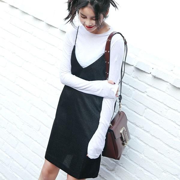 | シャイニー ラメラメ キャミソール ワンピース ミニ丈 黒 ブラック シルバー 無地 【ワンピース ミニ丈 レディース 女性 ロンデルブラック ワンピース ロンデルブラック one-piece 派手カワ ラメ シャイニー チュニック】 | |