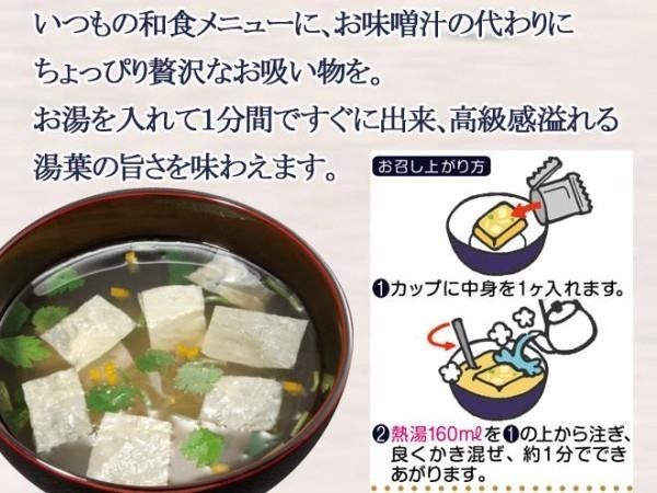 | 仕様 | ・フリーズドライ製法 ・化学調味料無添加 賞味期間:製造日より360日 名称:即席吸物 |