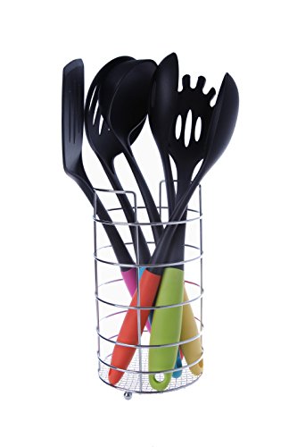 -. Title : Kitchen Utensil Tool Gadget Set - 6-Piece Non-stick Nylon Cooking Utensils Set with Holder, Pasta Server, Slotted Spatula, Slotted Skimmer, Ladle, Spoon, and Slotted Spoon by Juvale