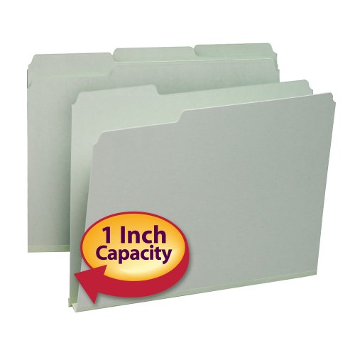 -. Title : Smead Pressboard File Folder, 1/3-Cut Tab, 1" Expansion, Letter Size, Gray/Green, 25 per Box (13230)
