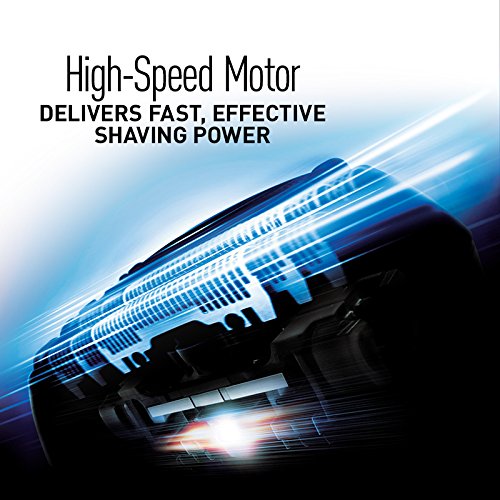 This rechargeable shaver uses a high-velocity 10,000 rpm motor drive for consistent, even shaving, shave dry or in the shower with foam or gel for total wet dry shaver convenience.