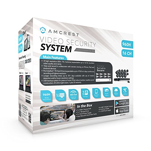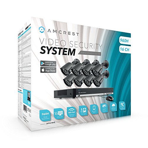 AMCREST 960H 16CH Video Security System - Eight 800+TVL Bullet IP66 Weatherproof Cameras (Black)