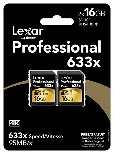 Lexar Professional 633x SDHC/SDXC UHS-I cards let you quickly capture and transfer high-quality photos and 1080p full-HD, 3D, and 4K video, with a read transfer speed up to 633x (95MB/s). The cards leverage UHS-I technology (UHS Speed Class 3 (U3) for 32GB-256GB capacities) for high-speed, Class 10 performance. And when using a USB 3.0 card reader, you'll power through post-production with high-speed card-to-computer file transfer. This dramatically accelerates workflow from start to finish, so you can save time and get back to the business of photography. Cards include downloadable Image Rescue software, and come with a limited lifetime warranty.Feature