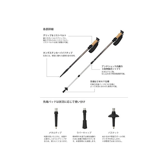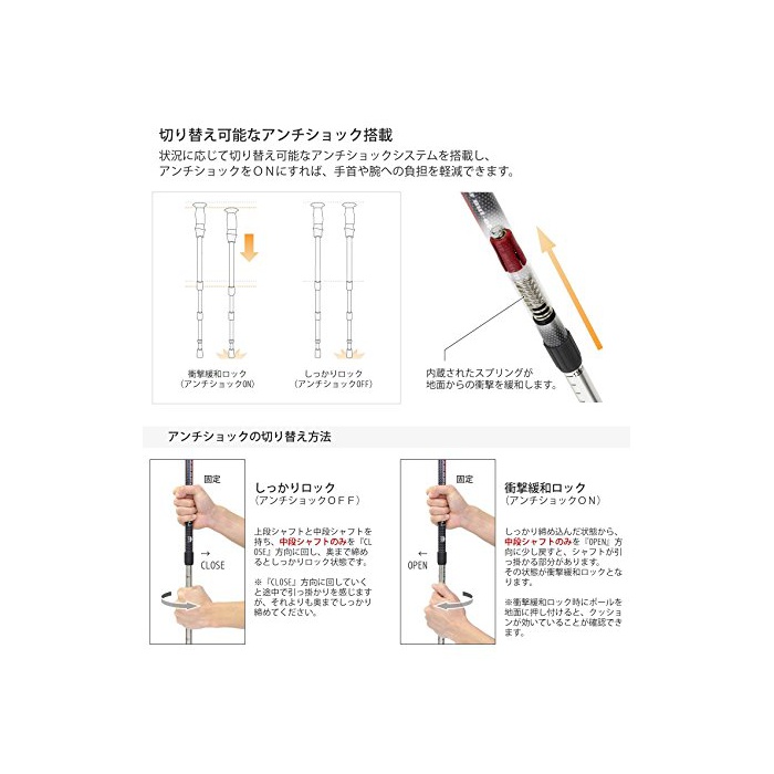 원본상품명: VAXPOT(バックスポット) トレッキングポル 2本セット アンチショック機能付き 3段式 アルミ製 VA-8002