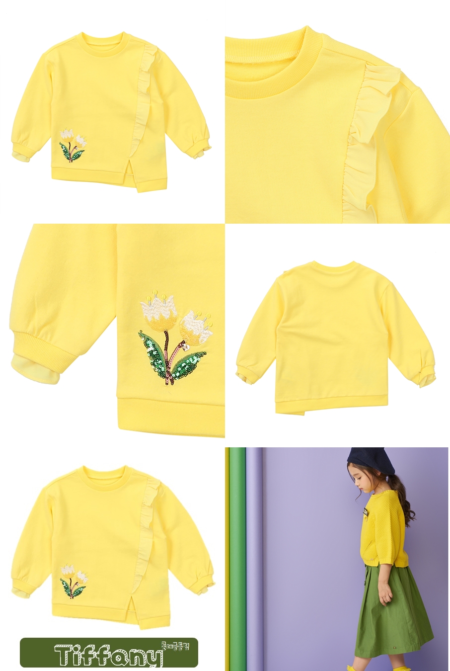 사선우븐 프릴이 포인트인 맨투맨티로 러블리하고 귀여운 느낌의 아이템이다