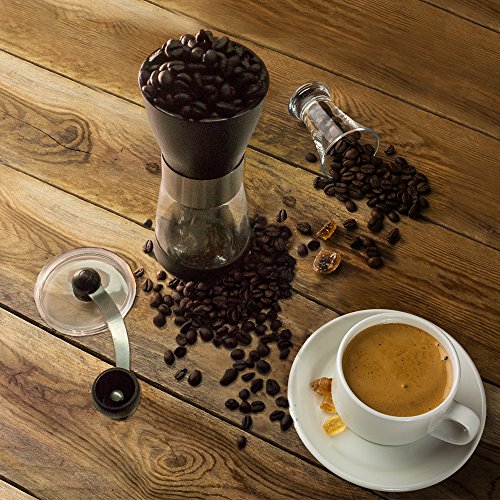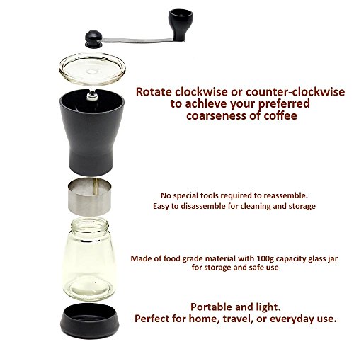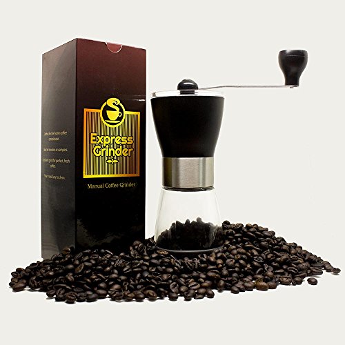 Express Grinder Manual Coffee Grinder is simple to use, easy to clean, and will give you the freshest tasting coffee for your favorite brew. Whether you love Aeropress, Drip, Moka Pot or French Press, you'll always have this portable mill to grind your coffee beans in just a few minutes. This space saving grinder is perfect for small spaces measuring less than 8" tall by 3" wide. The ergonomic stainless steel hand crank is the perfect length and the detachable 100g glass jar boasts a silicone base for extra grip and protection from bumps.