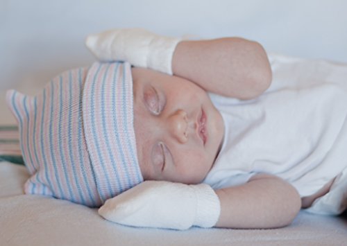 5 Piece Hospital Hat & Mitten Set for Newborn Baby (Boy) by Nurses Choice