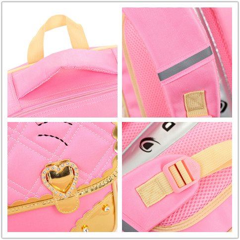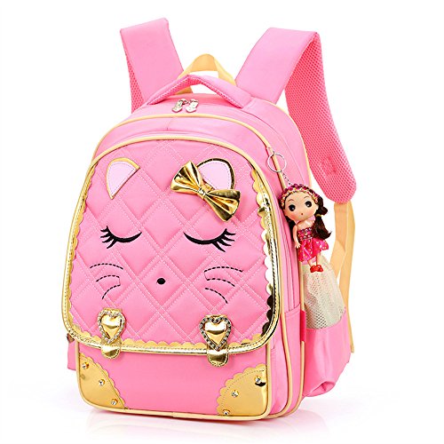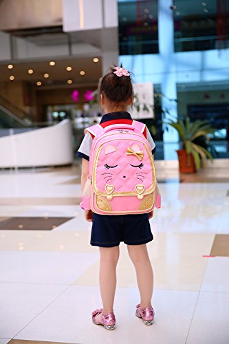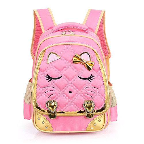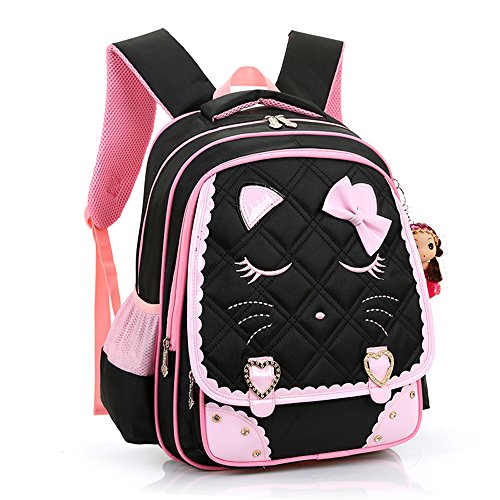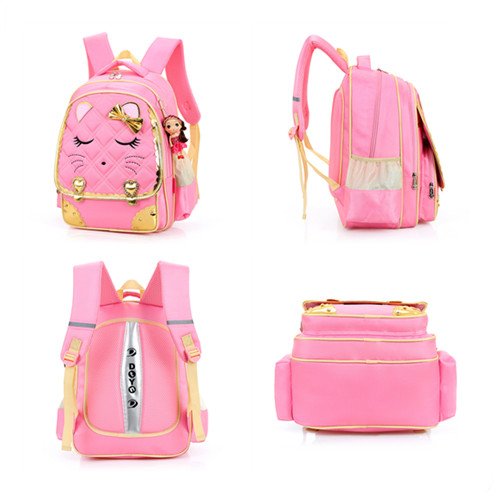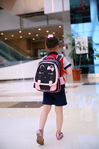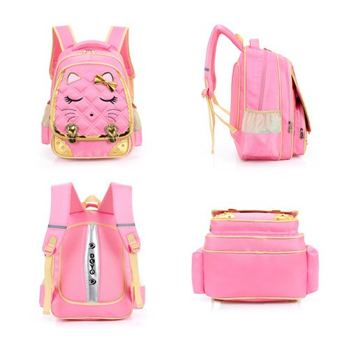 Product Description Product description ●Cute sweet cat smile face and bow princess design, every little girl wants a cute and beautiful backpacks.Great for 5-12 years little girls. ●High quality nylon fabric.It's large and lightweight breathable.With adjustable padding shoulder straps, which greatly reduce the pressure to shoulders. ●Ergonomic design, multi interlayer airflow, suitable for school students specifically. ● Imported precision waterproof fabrics can effectively protect the books and other items not to wet in the backpack. ● Padded thicken and adjustable shoulder straps, protection the spine bone, prevent bow-backed, correct sloping shoulders. ● Compressive strength of handle, high grade metal zipper, made the backpack durable and practical. ● Large capacity and storage space, multilayer design, easy to sort out, wear-resisting, anti-wrinkle, waterproof and easy to clean up. ● The backpack has main pocket, second pocket, vice-home bag , prep bag and 2 side mesh pockets, enough space to carry items for daily use. ●Perfect for primary and middle school students daily use, camping, hiking, traveling ,school bag, shopping, placing laptop, ipad etc. 0